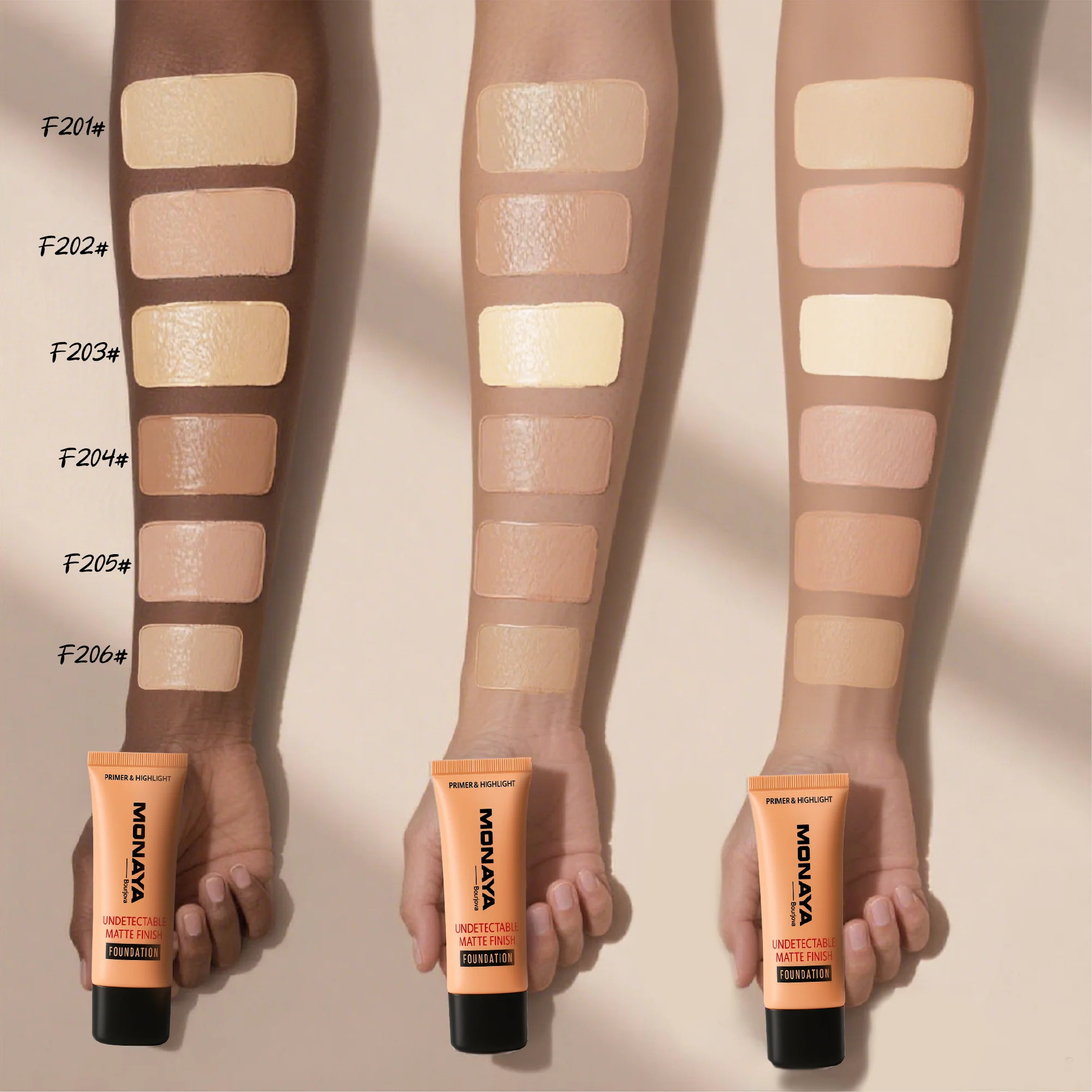 Undetectable Matte Finish: The Monaya Bourjova Primer & Highlight Foundation provides a flawless matte finish that blends seamlessly with your skin, leaving no visible traces. Perfect for a natural, undetectable look.