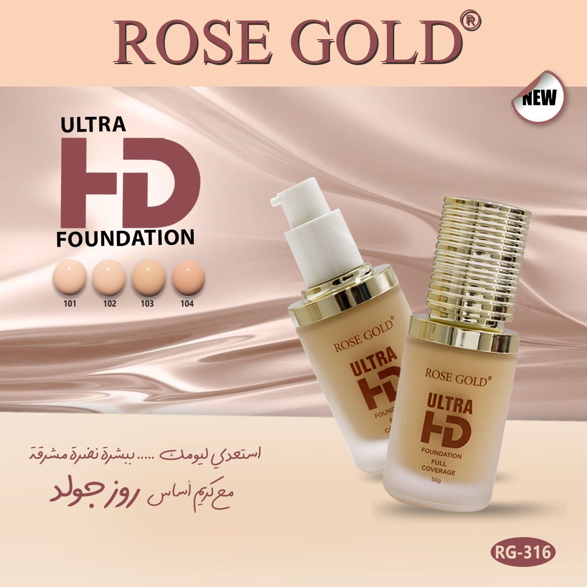 Rose Gold Ultra HD Foundation Full Coverage In 6 Shades